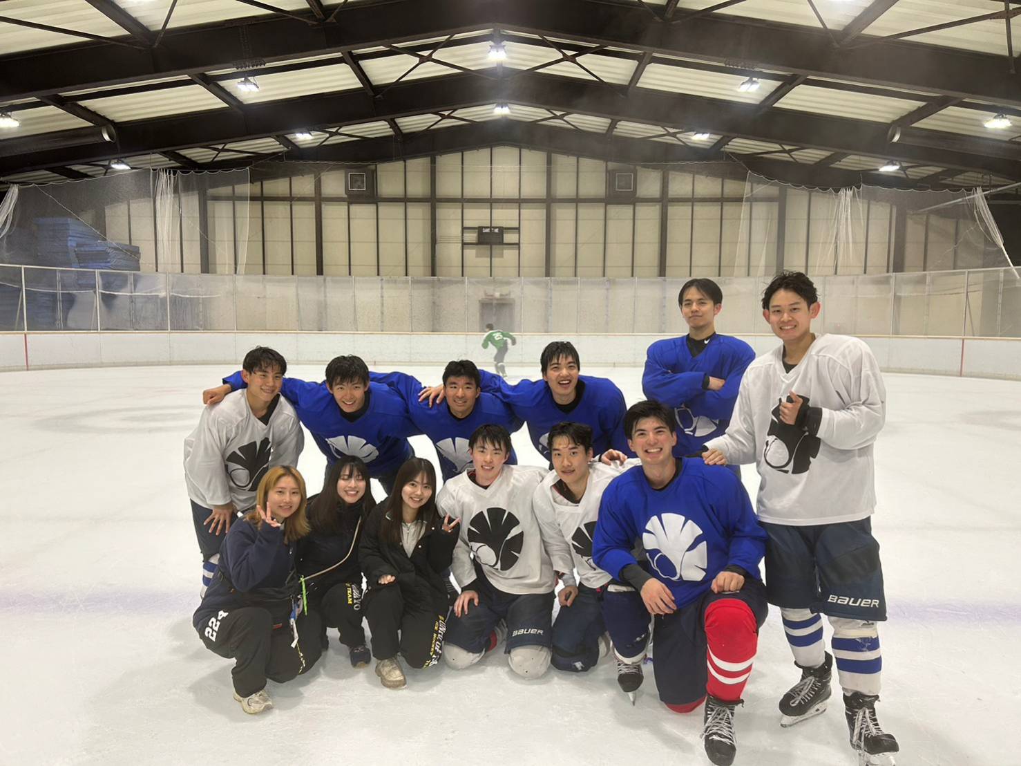 野球を12年間やって、しかもしっかり部活でやって散々酸いも甘いも経験した気がして、もう自分が一生懸命プレーをしなくてもいいかなって思っていた。そんな中、サーオリでクラスのできたばかりの友達と一緒に回っていた時、何となくアイスホッケーの新歓があって、何となく話を聞きにいった。恐らく、大河さん大森さんゆまさんあたりがいた気がします。そのまま1分間の新歓ビデオを観させられて、ド深夜の法外な時間に新歓するから来てみない?って言われてとりあえずフォームに回答した。深夜に未知のスポーツをするという謳い文句は、好奇心旺盛な自分には十分すぎるほど魅力的で、ワクワクして向かった記憶がある。6人くらいで一緒に申し込んだはずなのに4人ブッチして2人で参加することになってしまったが、そんなことがどうでも良くなるほど楽しい新歓だった。大森さんありがとうございます。貸しスケートが悪かったのか滑る方はてんでダメで、軽く絶望していたが、シュート形式の的当てはなぜかとても調子がよく、優勝してしまった。帰りの車は大森さんりかさんのりこさんの車で、深夜ドライブなんてしたことは無く、それも含めてとっても楽しかった。次の日の朝からのヨット新歓は起きれるはずもなく無断欠席してしまった、ヨット部の人たちすみません。