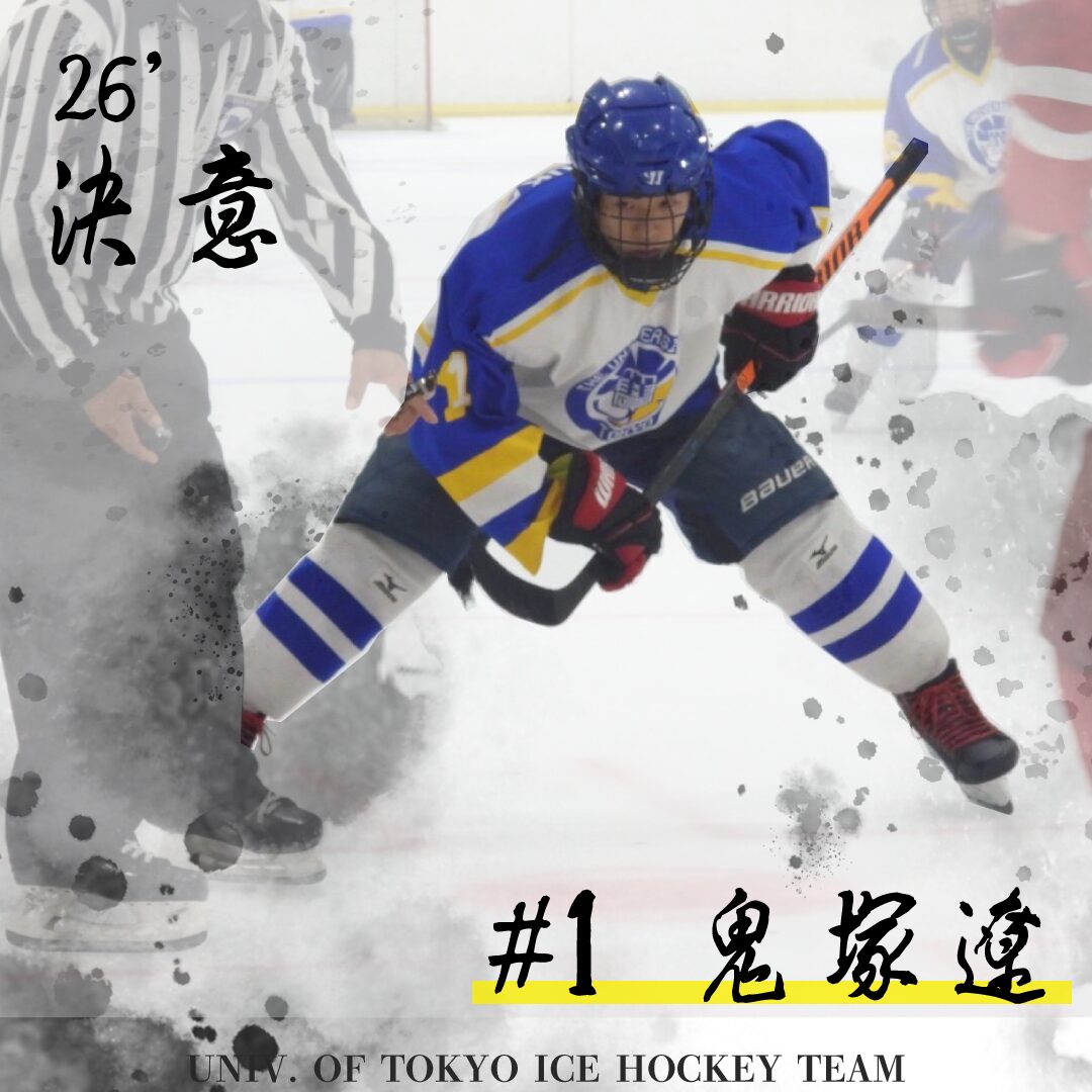 工学部航空宇宙学科新4年、センターの鬼塚遼です。 平素より東京大学アイスホッケー部に多大なるご支援、ご声援をいただき、誠にありがとうございます。